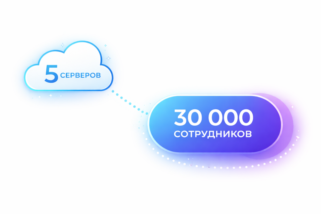 Для самых крупных предприятий с территориально-распределенной структурой и десятками, и сотнями тысяч пользователей существует дополнительный сценарий масштабирования, позволяя взаимодействовать друг с другом сотрудникам различных филиалов.