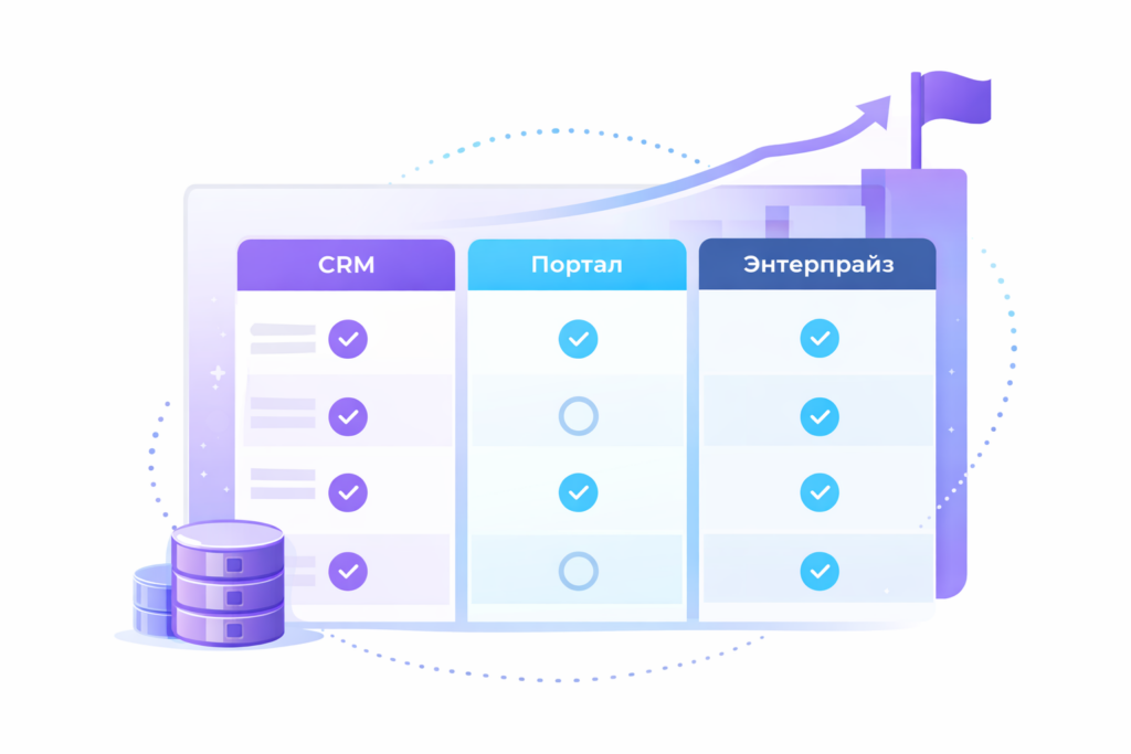 Энтерпрайз — редакция для крупных компаний от 500 сотрудников, с многодепартаментностью, возможностями масштабирования и отказоуйстойчивости, с максимальным уровнем поддержки от 1С‑Битрикс.