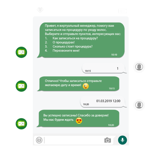 Простыми словами, это робот, искусственный интеллект, который по ранее заготовленному сценарию будет выполнять те или иные действия в зависимости от поступивших команд от его собеседника. В нашем случае, чат-бот — это виртуальный собеседник, отвечающий на заготовленные вопросы и выполняющий определенные действия в ответ на некоторые вопросы клиентов.